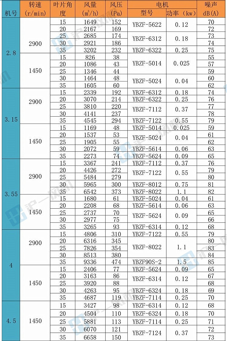 2.8/3.15/3.55/4/4.5/5/5.6/6.3/7.1/8/9/10/11.2#风量800-70000m3/h,功率0.04-7.5KW,能满足绝大部分客户参数
